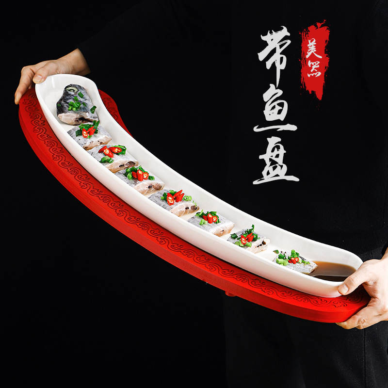 アーチ形商用レストランウナギ皿半円形クラブホテルの特色ある境地料理のアイデア食器の長い帯魚皿