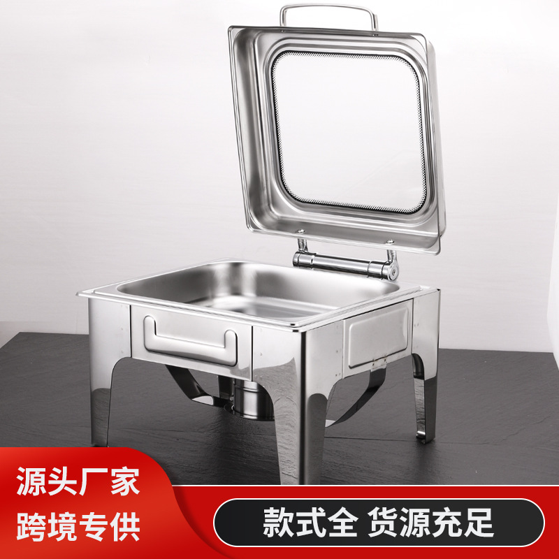 ステンレス鋼の正方形の油圧カバー視覚的な大型ガラスビュッフェストーブ朝食断熱ストーブホテルビュッフェストーブ