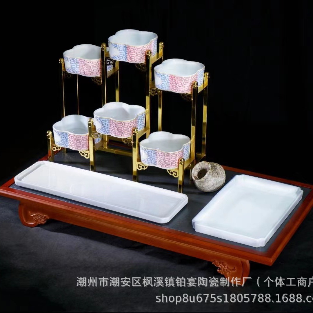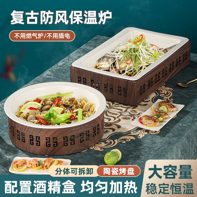ホテル木目国風大容量バイキング調理食品保温陶磁器展示盤加熱ストーブ台棚
