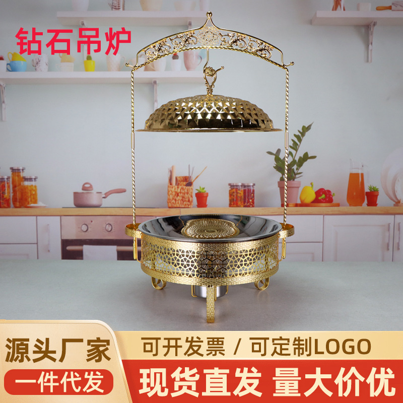 メーカー卸売り対外貿易国境を越えたステンレス金色アルコールストーブ鍋物吊り蓋ホテルレストランのセルフサービスストーブ加熱