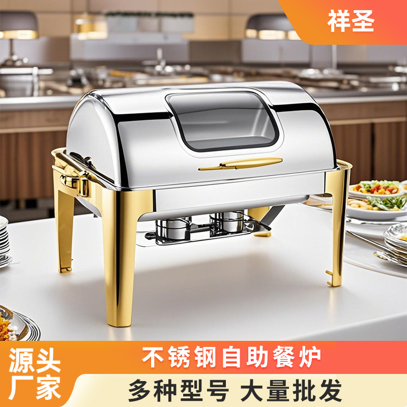 ステンレス製ラウンドビュッフェストーブ厚みのある多機能ホテルビュッフェストーブフリップトップビジュアルテーブルアルコールクロスボーダー