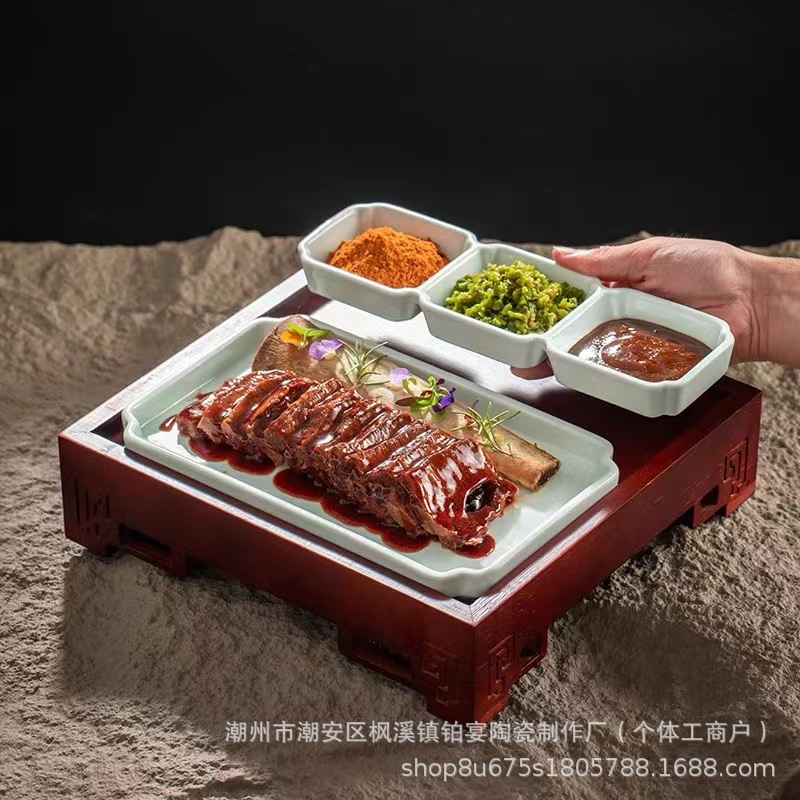 特製牛リブプレート ホテル竹陶器組み合わせ食器 レストラン揚げ細切り豚・羊カルビ ソース皿付き