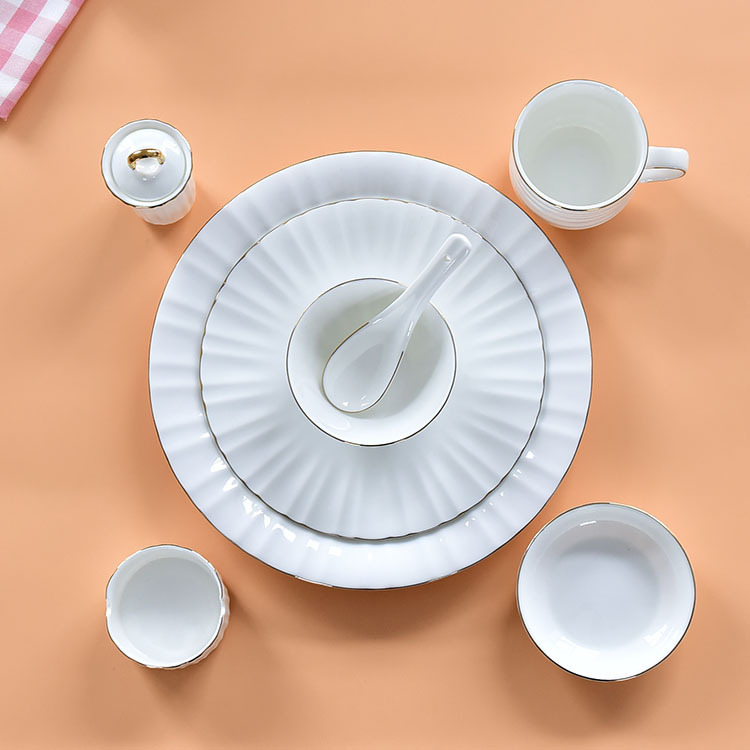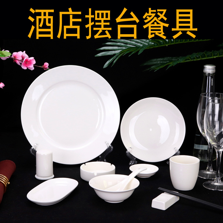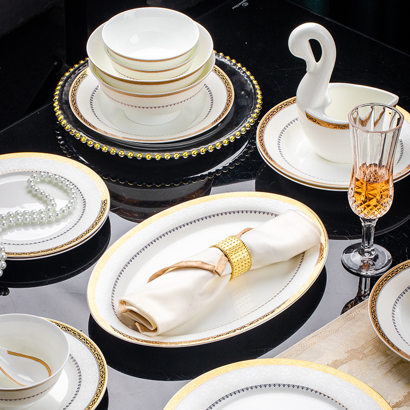 ホテル用食器骨磁器金線振り子台四点セット新中国式ホテルレストラン食器皿セットロゴ印字