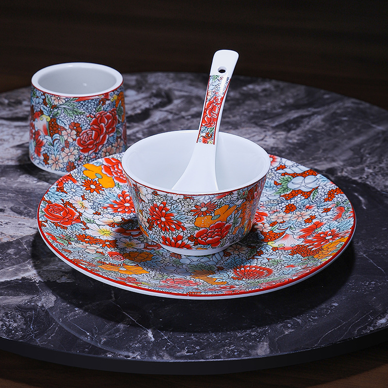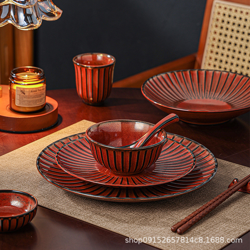 弥生時代「濃紅」日系食器セット創意高級実用ホテル陶磁器食器セット