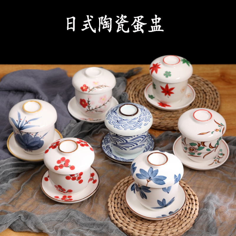 日本式陶磁器の煮物ホテルのレストランで卵を蒸します。