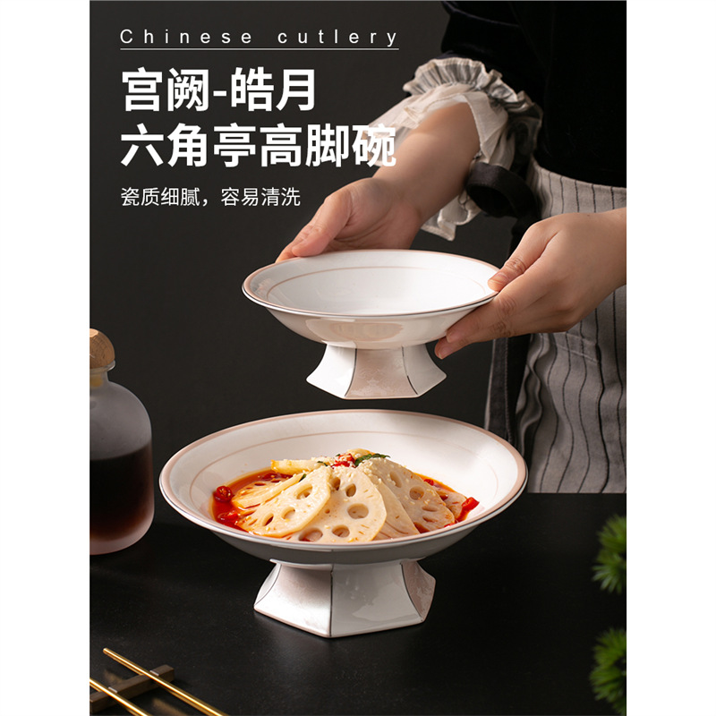 _ 宮-月荷 _ 《六角亭高足碗》会の中国式陶磁器の熱い料理皿の果物皿の高い食器