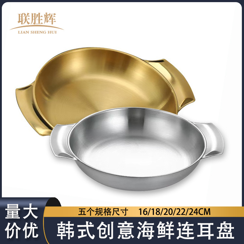 韓国式ステンレスの両耳の新鮮な鍋と耳の乾燥鍋の軽食の皿のアイデアのラーメンのパスタの円盤の食器