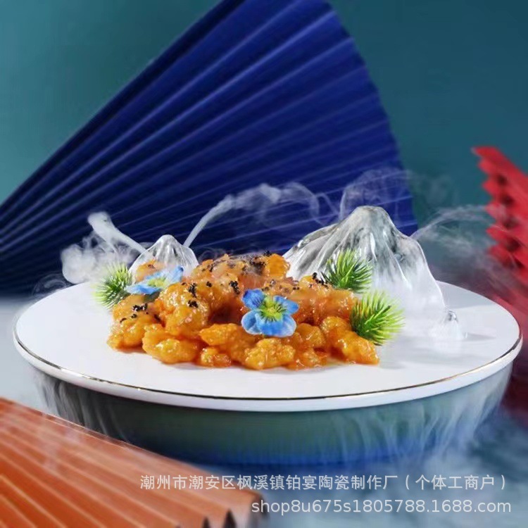 新中国式創意特色高級食器山峰橋形ドライアイス盤境地温菜冷菜レストラン専用