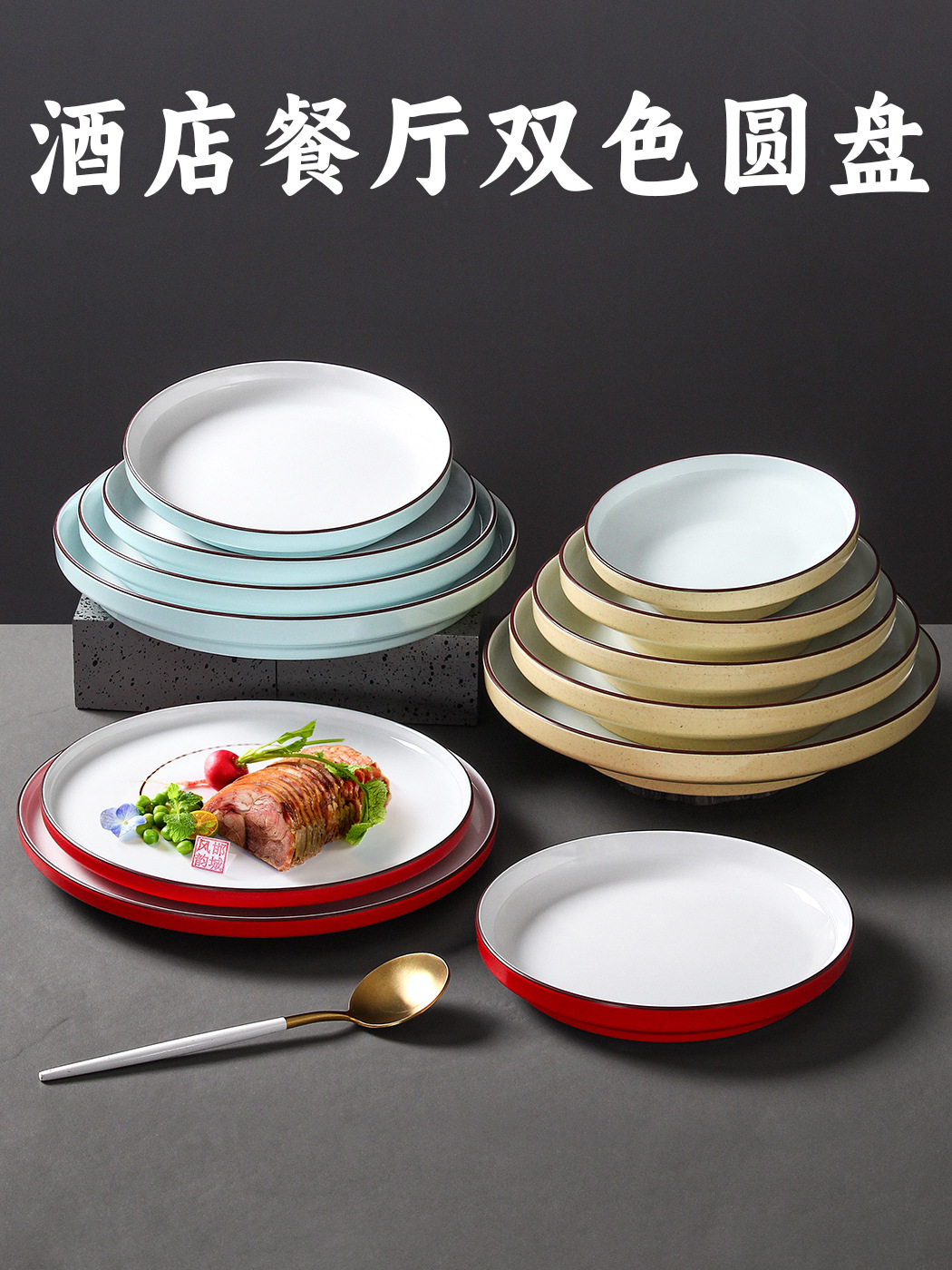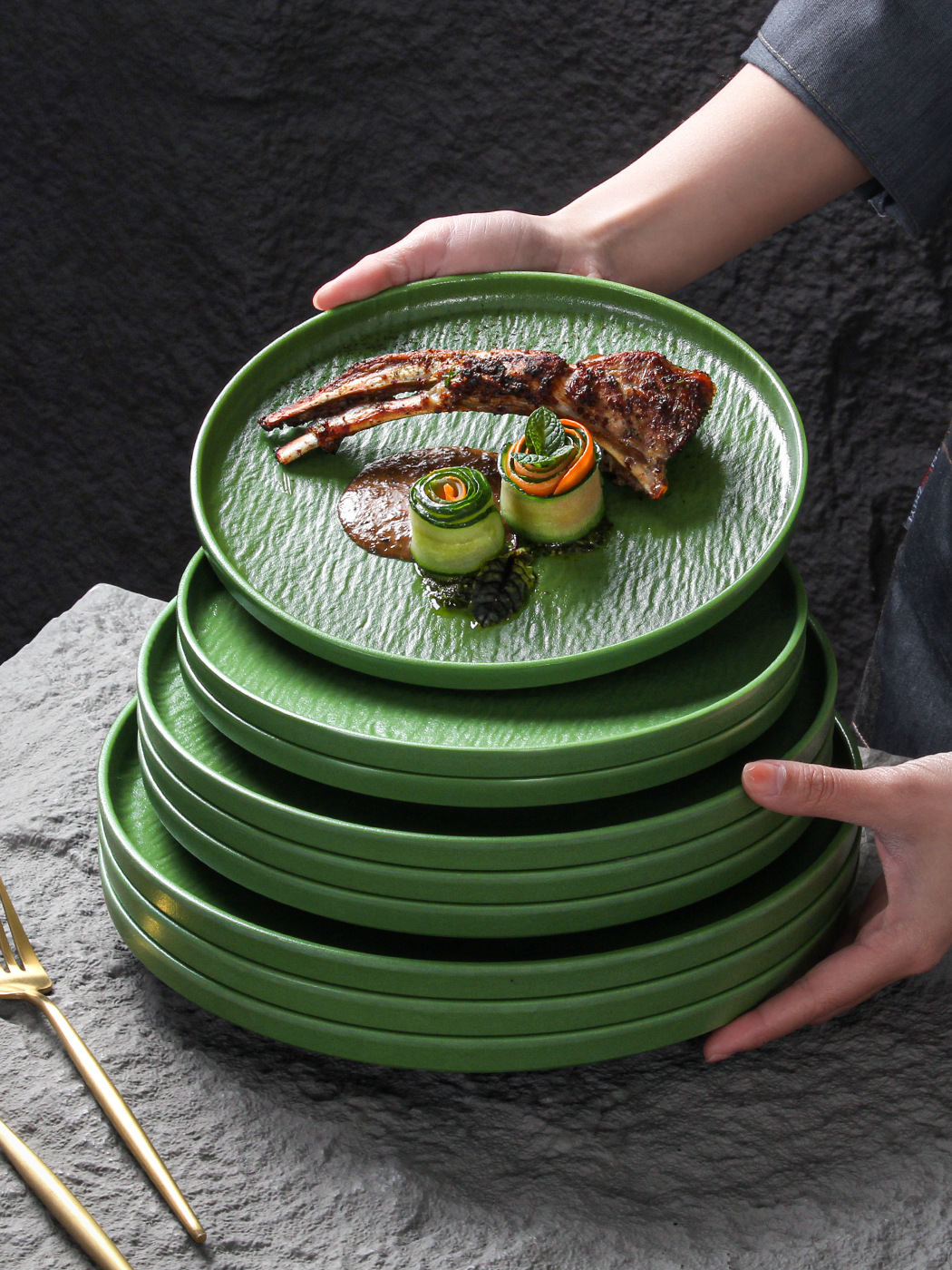 レストラン用メラミン食器プレート、ホテルレストラン冷菜丸皿、創作洋食ステーキ芸術的センスの皿盛り