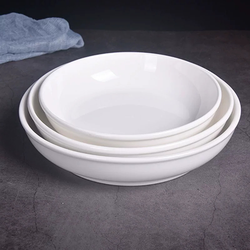 純白平皿浅皿ケーキお菓子皿洋食ステーキ円形皿家庭用料理皿ホテル陶磁器食器