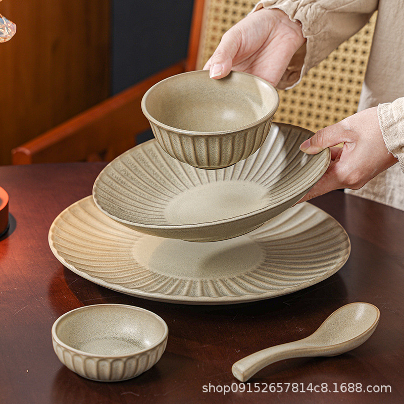 ドロップシッピング和風 2025 新しい窯変セラミック食器ボウルスプーンレストランカップとプレートの組み合わせ高価値絶妙な磁器