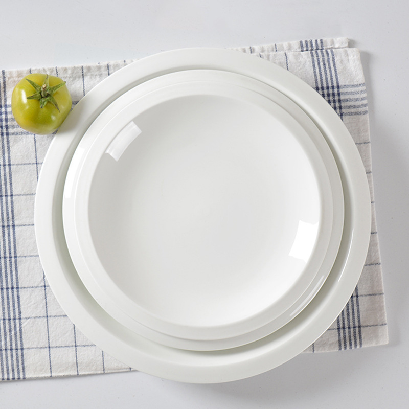 ホテル食器玉葉平盤純白洋食皿パスタ皿朝食皿陶磁器円盤家庭用創意料理皿