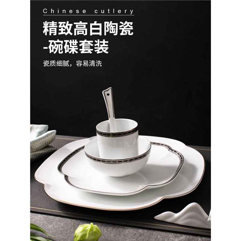 銀辺 _ 《五点セットの置物》中レストランの高級陶磁器食器会の精巧な高白碗皿セット