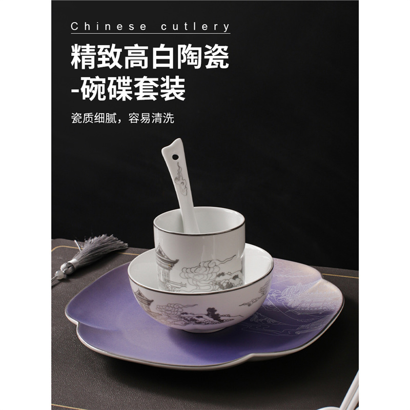 _ 宮紫 _ 《五点セットの置物》高級ホテルの精巧な高白陶磁器の碗の皿は食卓の食器をセットします。