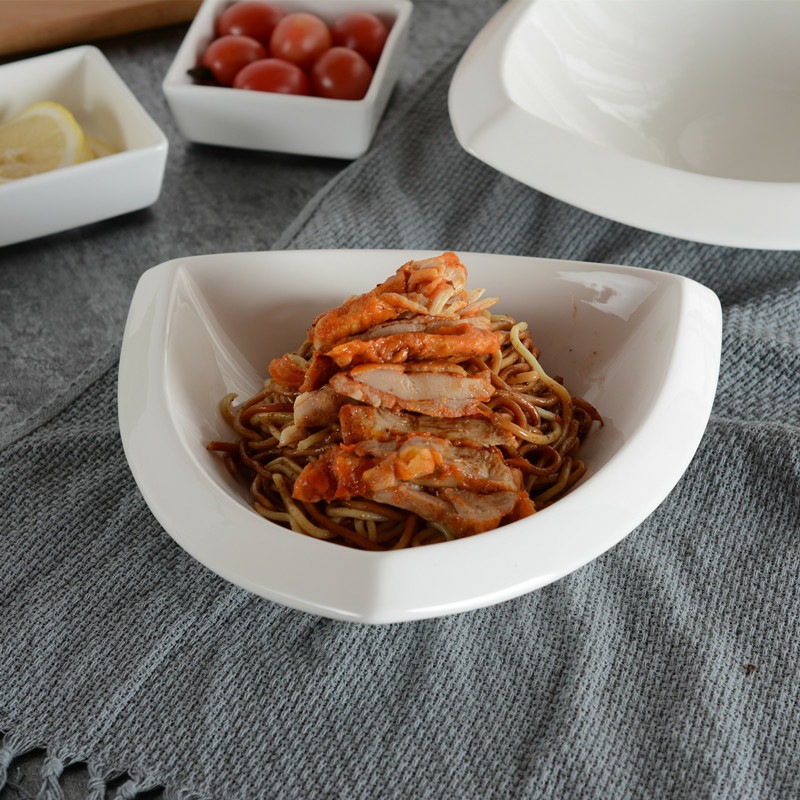 ホテルの食器の陶磁器の三角の順辺の碗の創意の日用の料理の皿のスープの碗のサラダの碗の麺の碗の純白の食器の皿