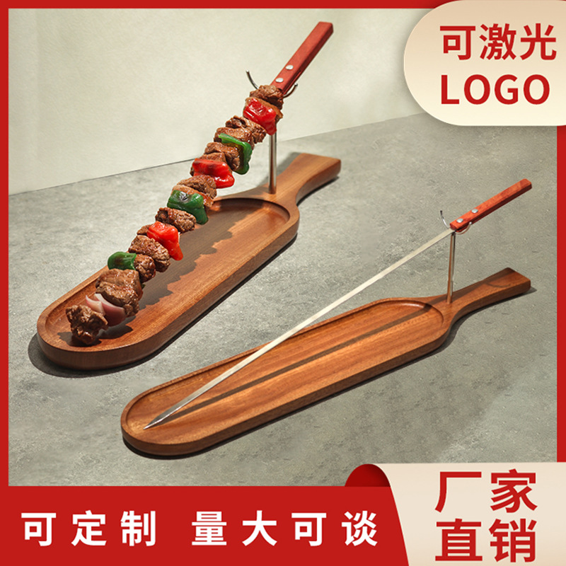 バーベキュートレイ インターネットセレブ クリエイティブ アメリカンレストラン 鍋 業務用 スペイン産ビーフ串 無垢材プレート スティックプレート