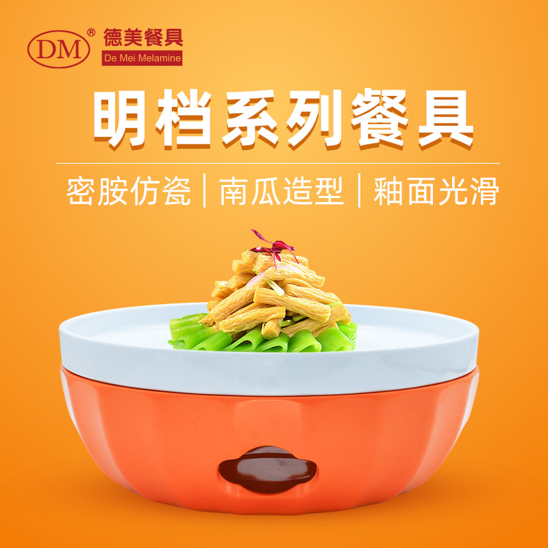 メラミンは磁器の食事の皿の中国式のホテルの明段の明炉の食器の皿のアイデアのかぼちゃの皿をまねてホテルの食事の皿を分けることができます。