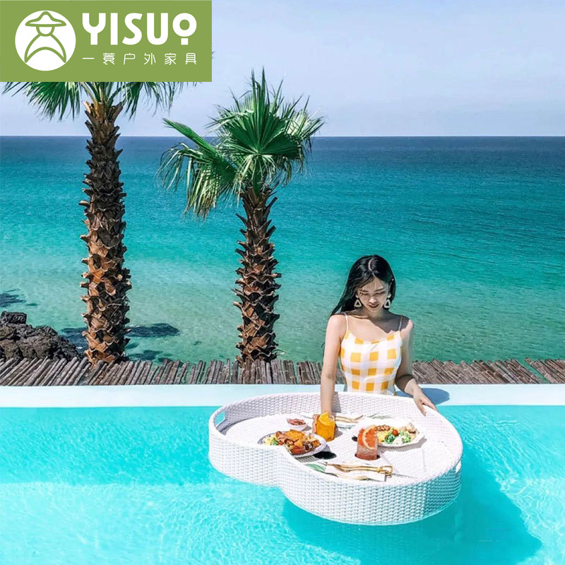 バリ島民宿ホテルプールフローティングトレーアフタヌーンティー水上食事皿防水日焼け止めネット赤藤編みかご