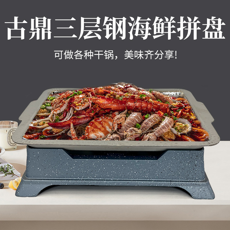 新商品三層鋼焼き魚炉海鮮大カレー皿アルコール環境保護油通用型無コーティング焼き魚皿