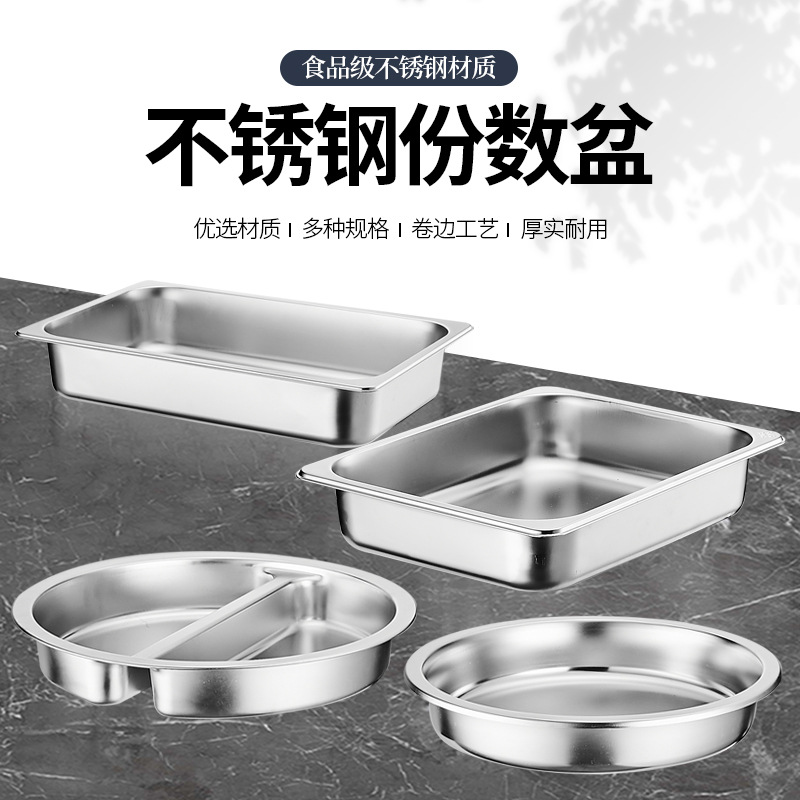 304部の数盆ステンレスはステンレス鉢を厚くして、1/1部の数盆は長方形のステンレス製の角盆をカバーしています。