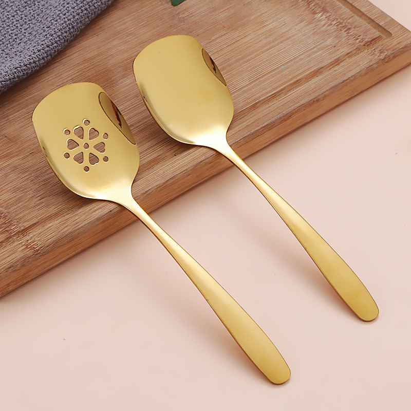 304ステンレス共通スプーン漏れスプーンホテルバイキング料理スプーンスプーンスプーンスプーンスプーンスプーンサービススプーン長い柄