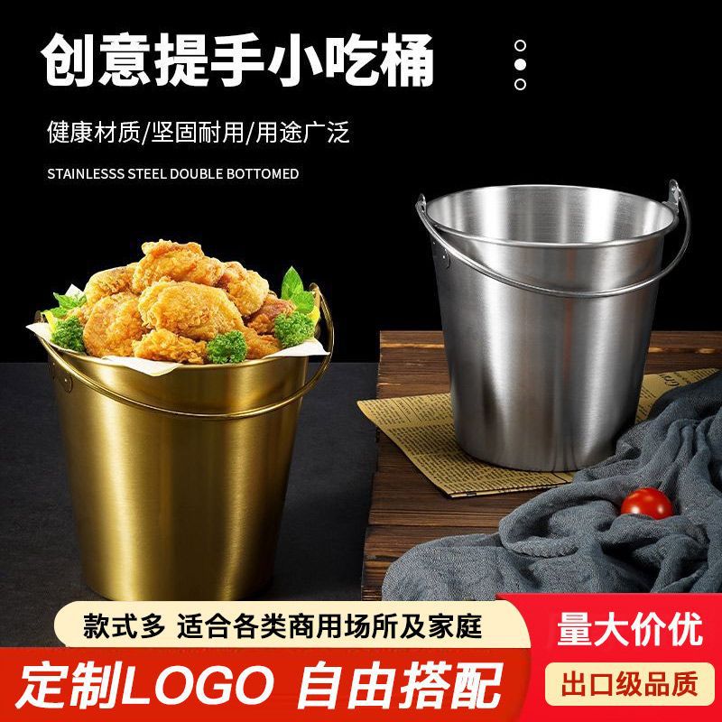 304 ステンレス鋼韓国フライドチキンバケツスナックフライドポテトバケツクリエイティブアイスバケツハンドル付きミニ小型バケツゴールデン