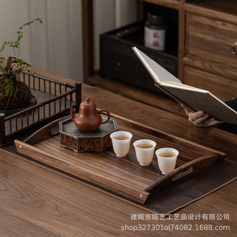 胡桃木長方形双耳斜角トレー実木茶道具皿バーベキュー盤ホテルレストラン双耳菓子木皿