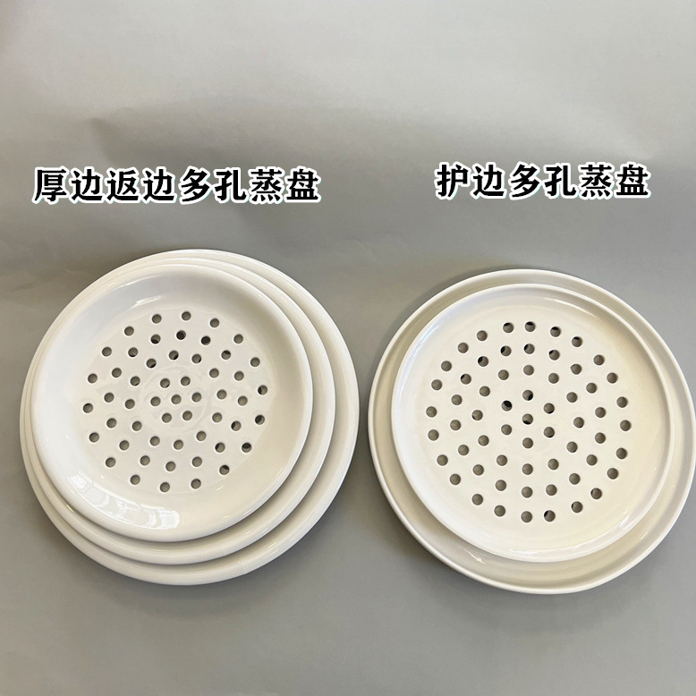 創意商用多孔質陶磁器蒸盤餃子皿蒸し魚皿蒸し肉まん皿蒸し海鮮円形蒸盤水切り皿