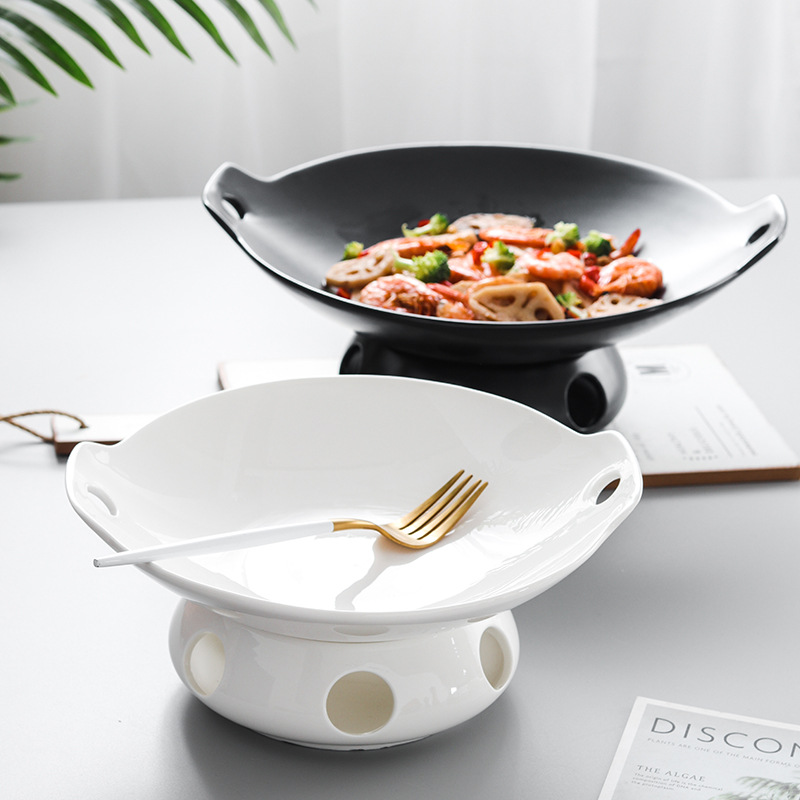 陶磁器の乾燥鍋食器加熱炉料理皿洋食深皿シンプルな双耳炒め鼎ホテルレストラン食器乾燥鍋