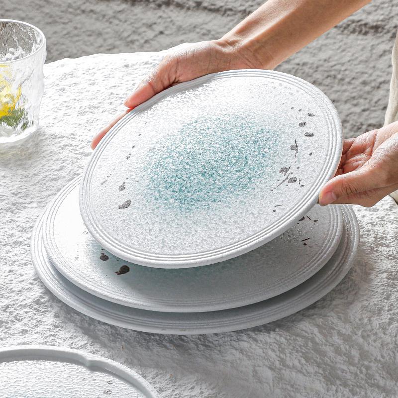 ヨーロッパ式陶磁器純白ホテルセット碗皿会レストランのトランクに食器の特色ある食事皿を並べて卸売りします。