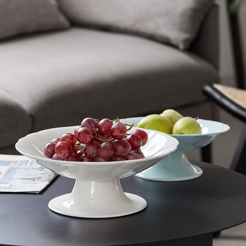 陶磁器の大きいサイズの高い足の果物の皿は仏の皿の北欧の風格の客間の果物のたらいの創意の冷たい料理の皿の境地の食器に供えます。
