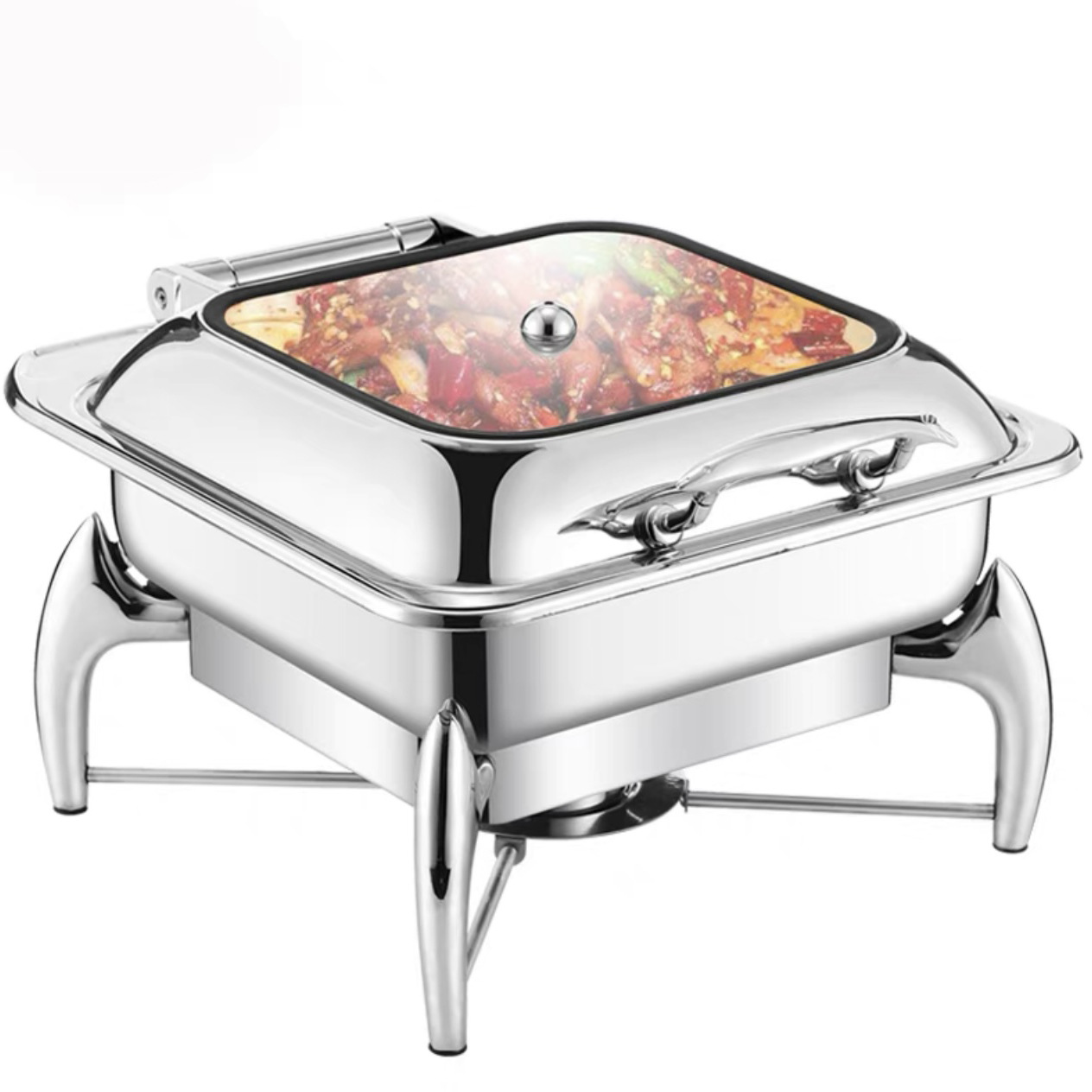 304ステンレスビュッフェ調理器電気加熱朝食炉ホテル可視カバー布菲炉角型保温鍋具