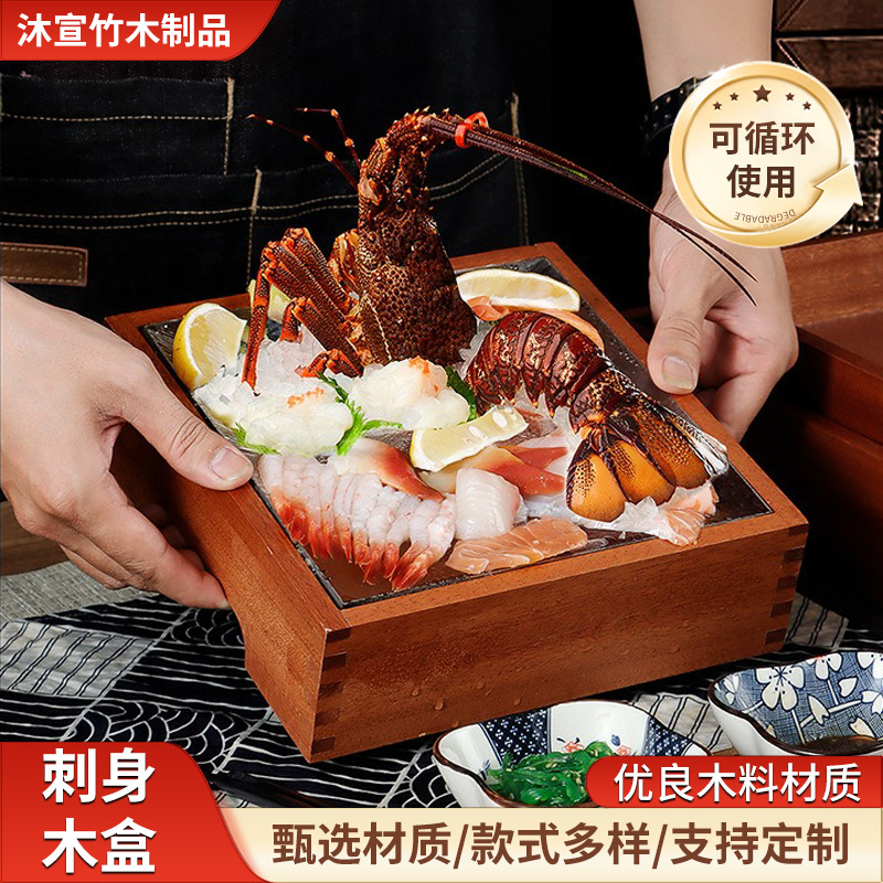 高級火鍋店創意冷え海鮮ロブスター銅盤木箱組み合わせネット紅三紋魚刺身盛り合わせ食器