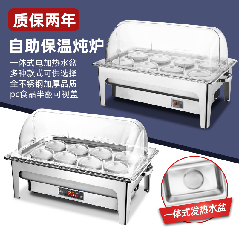 極厚ステンレス油圧ビュッフェストーブ電気加熱ビュッフェストーブビジュアルフリップホテル朝食保温ポット