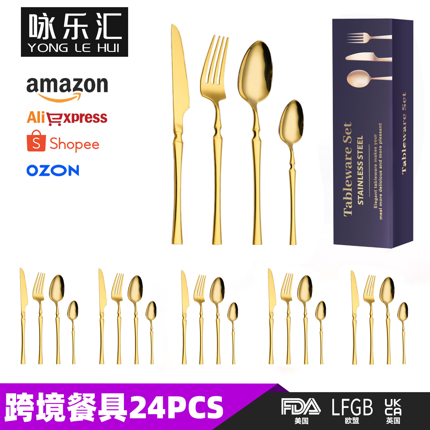 アマゾンクロスボーダーステンレス食器小蛮腰24点セットメーカー人気ホテル洋食ステーキ刀フォークスプーン