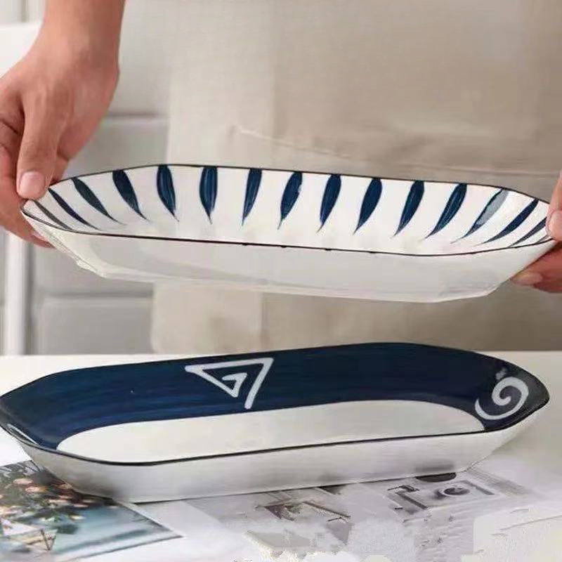 2つの陶磁器の魚の皿の野菜の皿の家庭用新型の陶磁器の大きいサイズの日本式の朝食の皿の寿司の皿の新型の蒸しの試合
