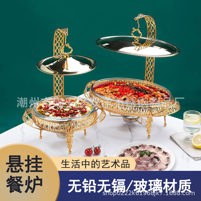 国境を越えたステンレス自助ガラス食堂アルコール加熱金色自助保温布菲炉吊り下げ食堂炉
