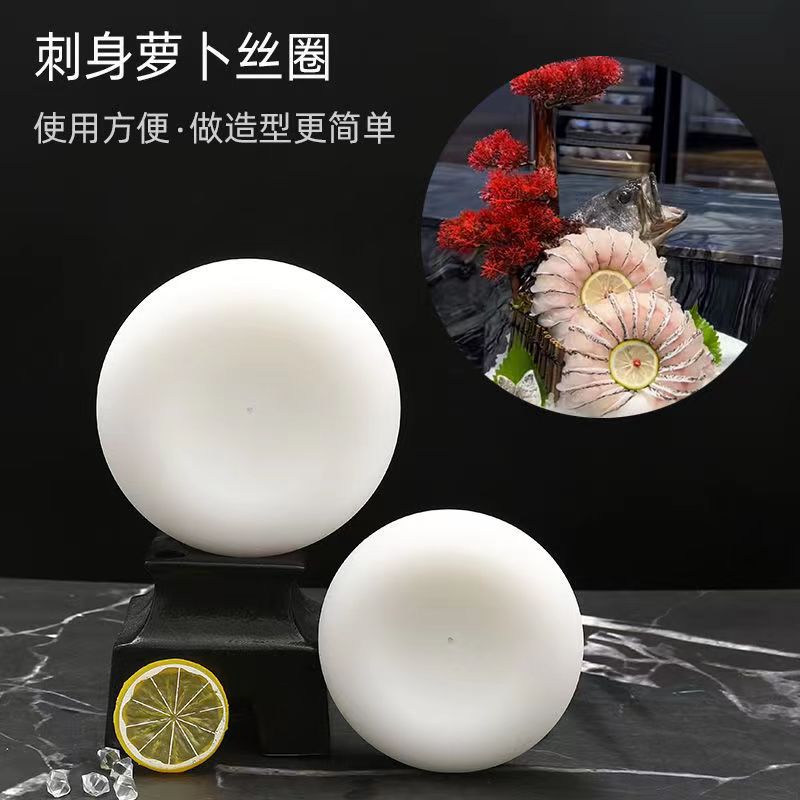 大根千切りプレート シーフードポーズプレート型 日本の刺身アークホワイトプレート サーモンフィレ 大根千切りリング
