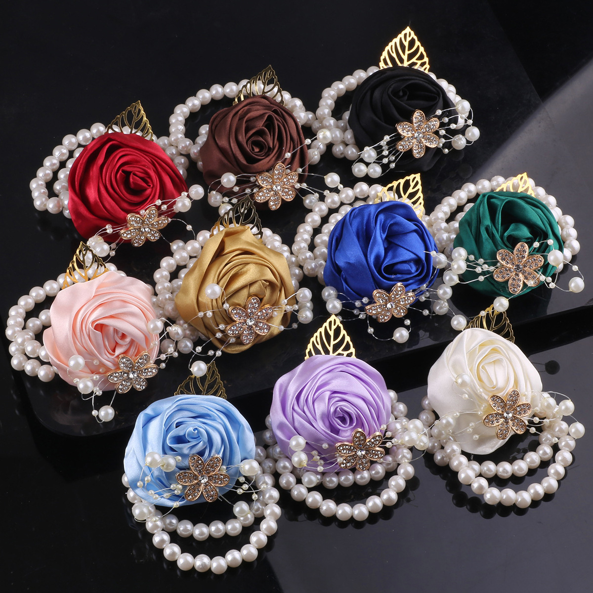 ウェディング金葉ビーズドリル手首花欧米新郎新婦リボンバラ手花メーカー現物SW1107