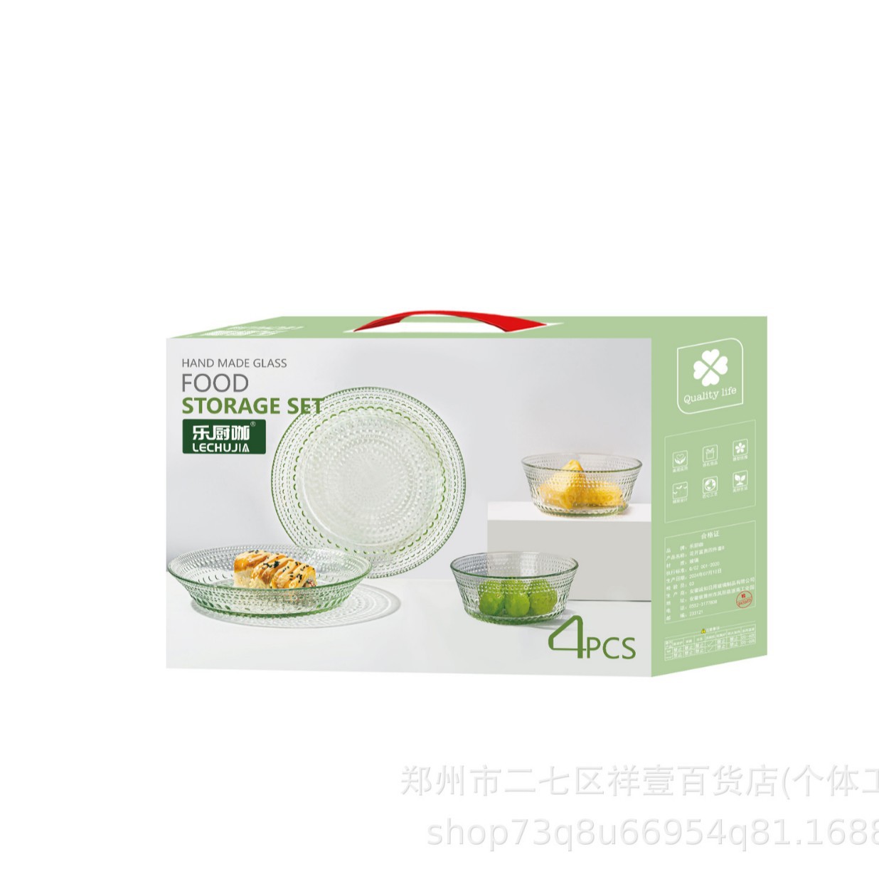 楽厨カレー花開富貴四点セットBシンプルガラス碗皿家庭用食器セットイベントお土産卸売り