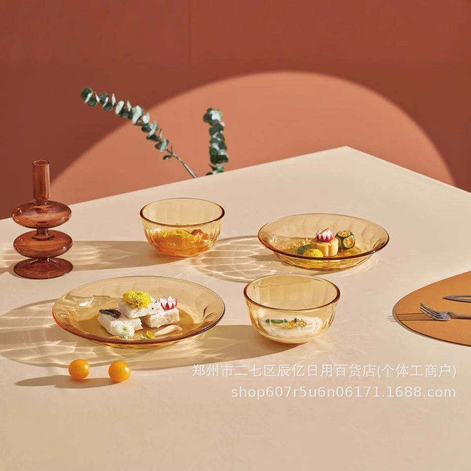 ヨーグルト高ボロン食器シリーズセット家庭用高価値茶色のガラスボウルとプレートサラダボウルインスタントラーメンボウルガラス