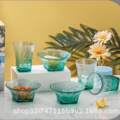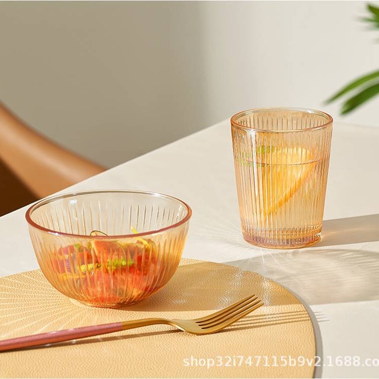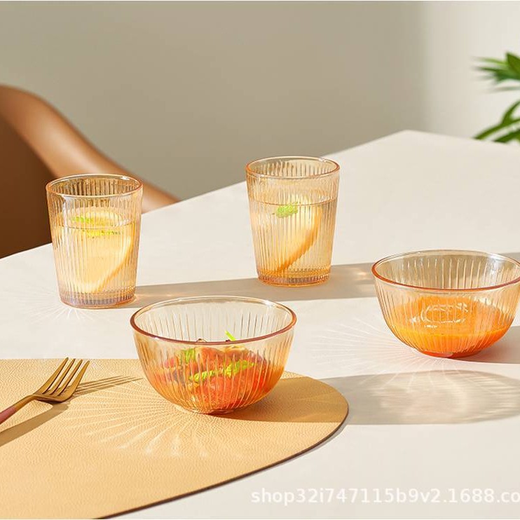 ボリトゥオミー縦模様ライト高級ガラスセット家庭用ウォーターカップデザートサラダボウルディナープレートお土産イベントギフト