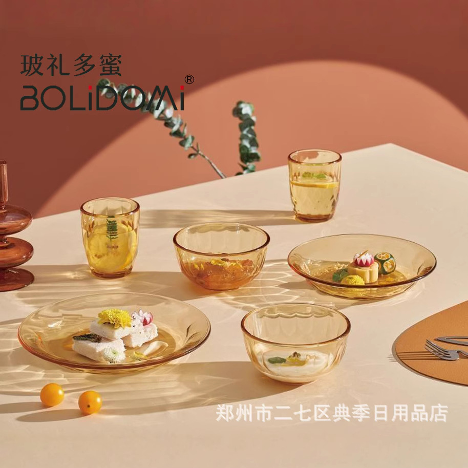 Bolido ハニーヨーグルト高ホウ素食器家庭用高価値茶色のガラスボウルとプレートサラダボウルインスタントラーメンボウルガラス