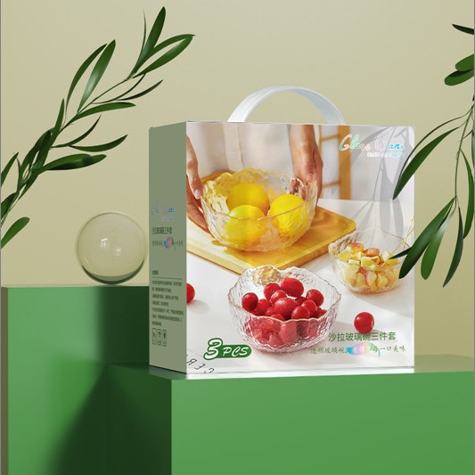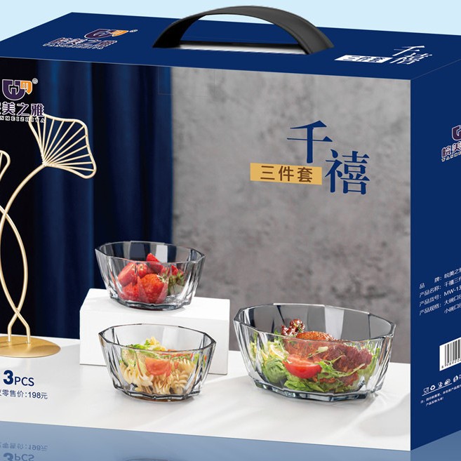 Wanmeiyi ミレニアム 3 点セットオープニングイベントギフトガラスボウル食器セットお土産ギフト卸売グループ購入