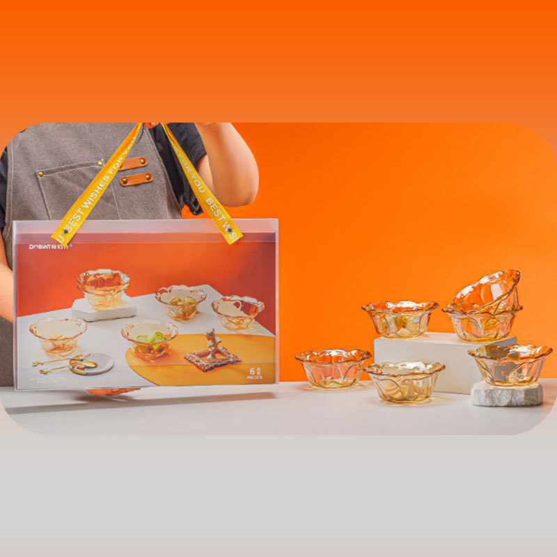 Dubaite Fortune High Shao 6点セット クリエイティブサラダボウル シンプル 家庭用 ガラスボウルセット ビジネスイベント ギフト