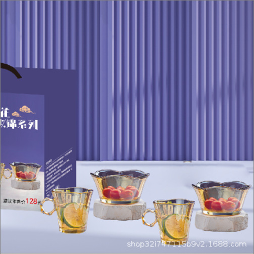 Qihang Yajiu ゴールドコインブリリアントカップとボウルセットクリエイティブライト高級ガラス食器ビジネスストアお祝いイベントギフト卸売