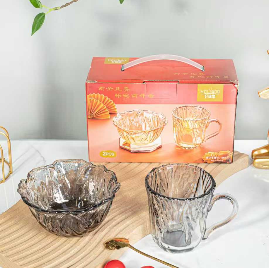 Jiu Tian Mulsanne シリーズ 耐熱ガラス食器 2 点セット JT11045C2 ガラス 1 カップとボウル食器セット