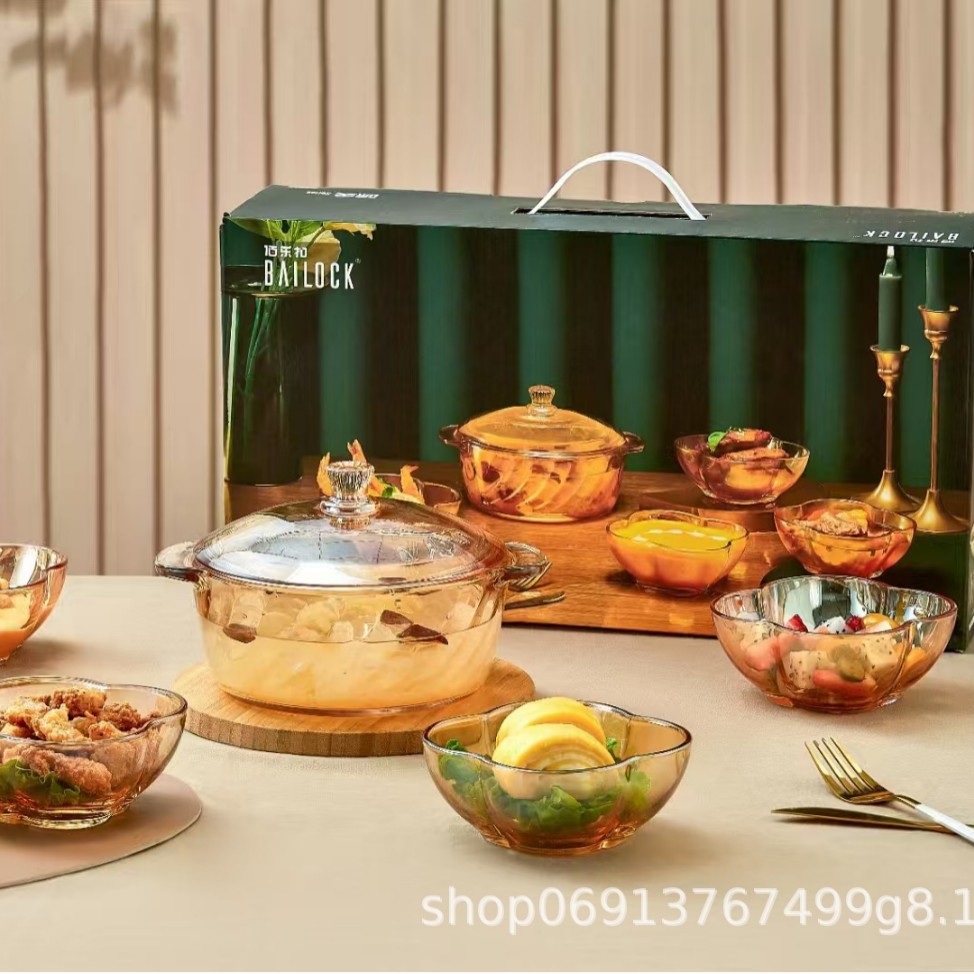 Jiu Tian Man Shiguang シリーズ高ホウケイ酸ガラス食器 7 点セットストアお祝い会員ギフトお土産卸売グループ購入ギフト