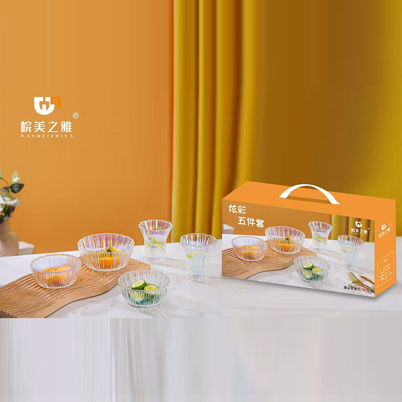 Wanmeiyi ヤのカラフルな 5 ピースクリエイティブファッションガラスサラダボウル食器セットビジネスメンバーシップギフト卸売