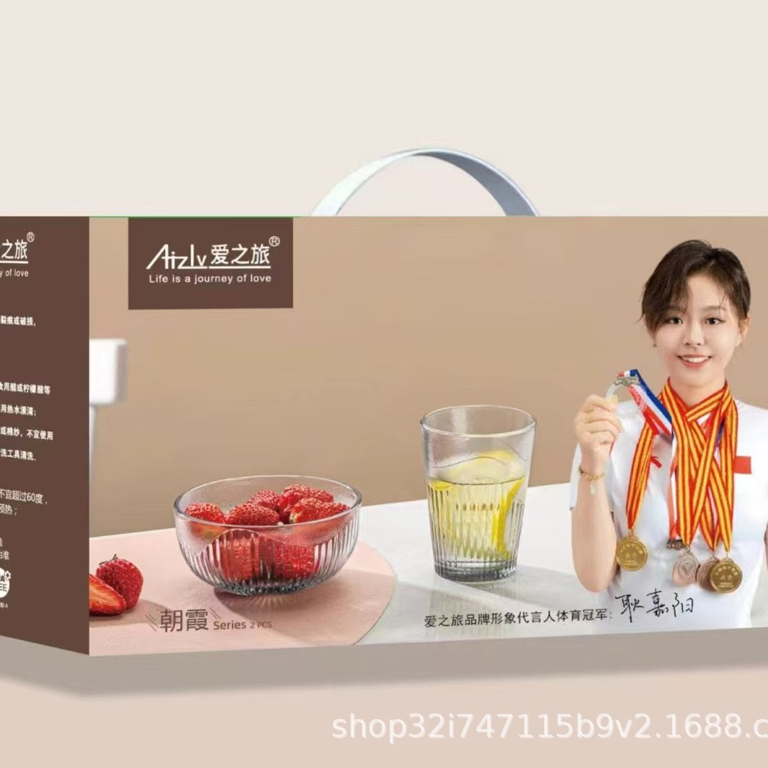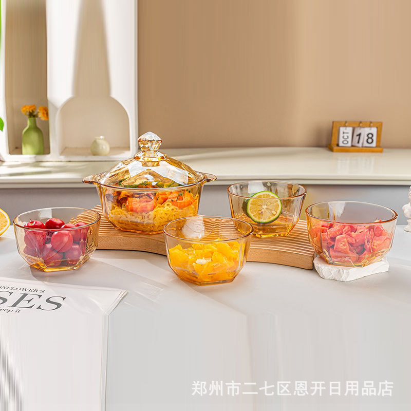 Meishangyuan Xingyue 2 点セットクリエイティブガラスボウルホームサラダボウルガラスハンドルカップビジネスストアお祝いギフト